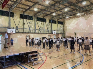 2021年5月17日 09時09分月2回の体育館での朝礼は、生徒会本部の4名が進行役です。体育館両サイドの4か所の扉は全開で、生徒同士も前後左右に約2mほど開けて整列しています。体育館の出入りも、玄関は1年生、他の脇の扉から別々に2年生、3年生が出入りしています。校長先生からは「明日から2日間、中間考査になります。さて、勉強する意味は何でしょう」という話をしました。